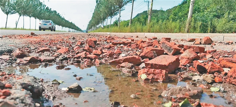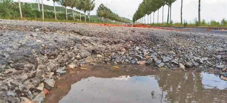 記者在近日的走訪中,濱水大道呼蘭段主要有兩個問題:一是路面破損嚴(yán)重,在30公里長路段有超過160個大坑,嚴(yán)重影響車輛通行和安全;二是路面排水不暢,多個路段雨后兩三天還存有積水。